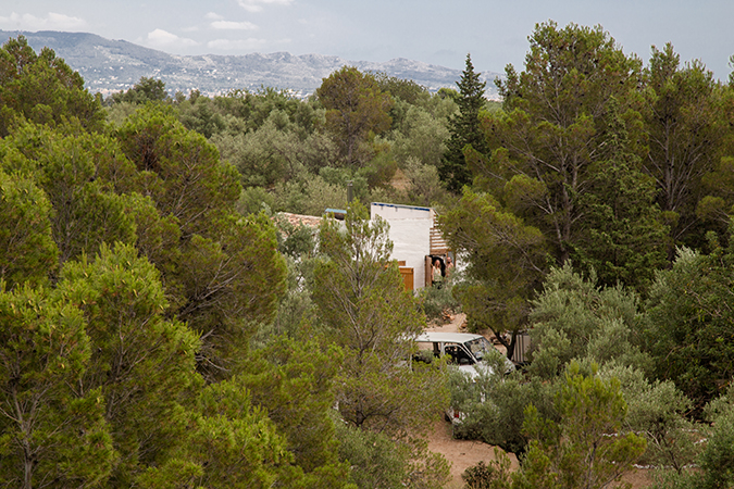 my contact with this place surrounded by huge mountains is quite surreal. after living in a big city, like barcelona for a few month, it feels weird to be outside experiencing wild nature. i need to adjust a bit and get used to the sounds, dust and heat of the afternoon sun. the area is full of olive trees and forest and it is really dry everywhere. the river does not host water anymore, they say it has not rained here for the last 8 months. while driving back, cecile is talking about the rules to get a permit, if you want to be a farmer or have a tourism business in spain. she presented a project, but this process of paperwork can take up to 5 years. she does not agree on the strict rules of the common agricultural policy therefore, she might not get any grant. the principles of permaculture that she has in mind, are not in line with the european agriculture policies, but she is not willing to change her way of taking care of her land, and would rather go without the money.